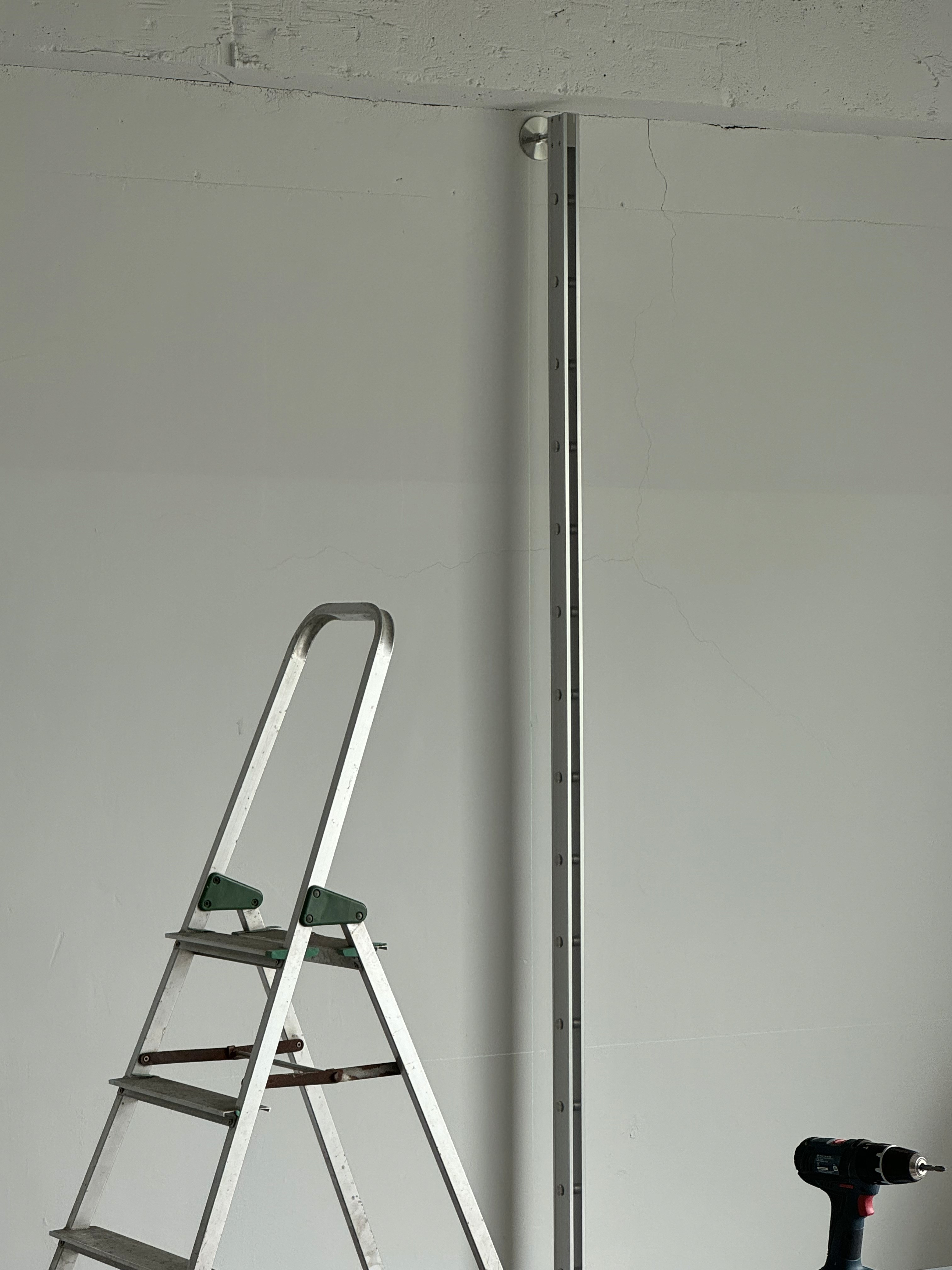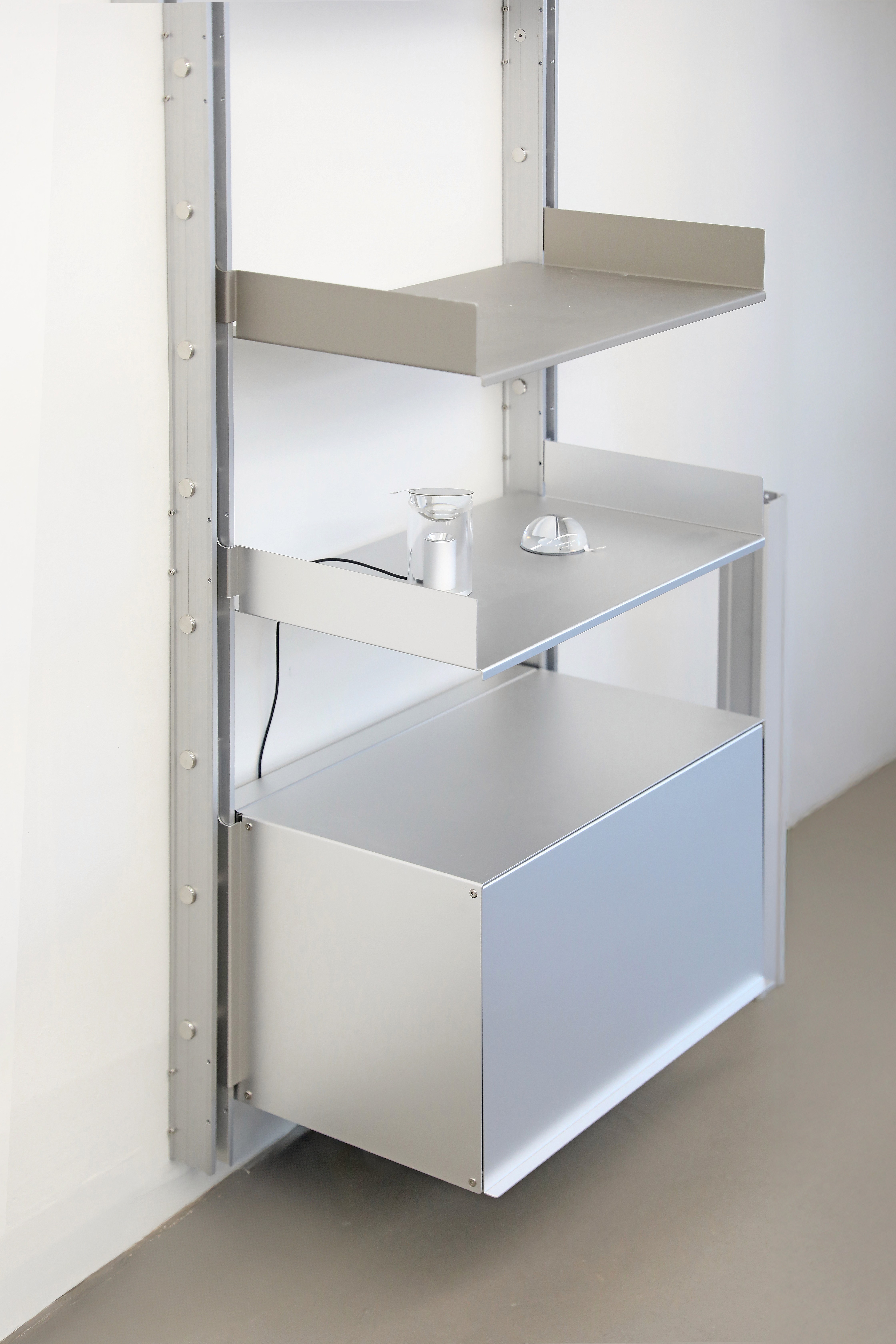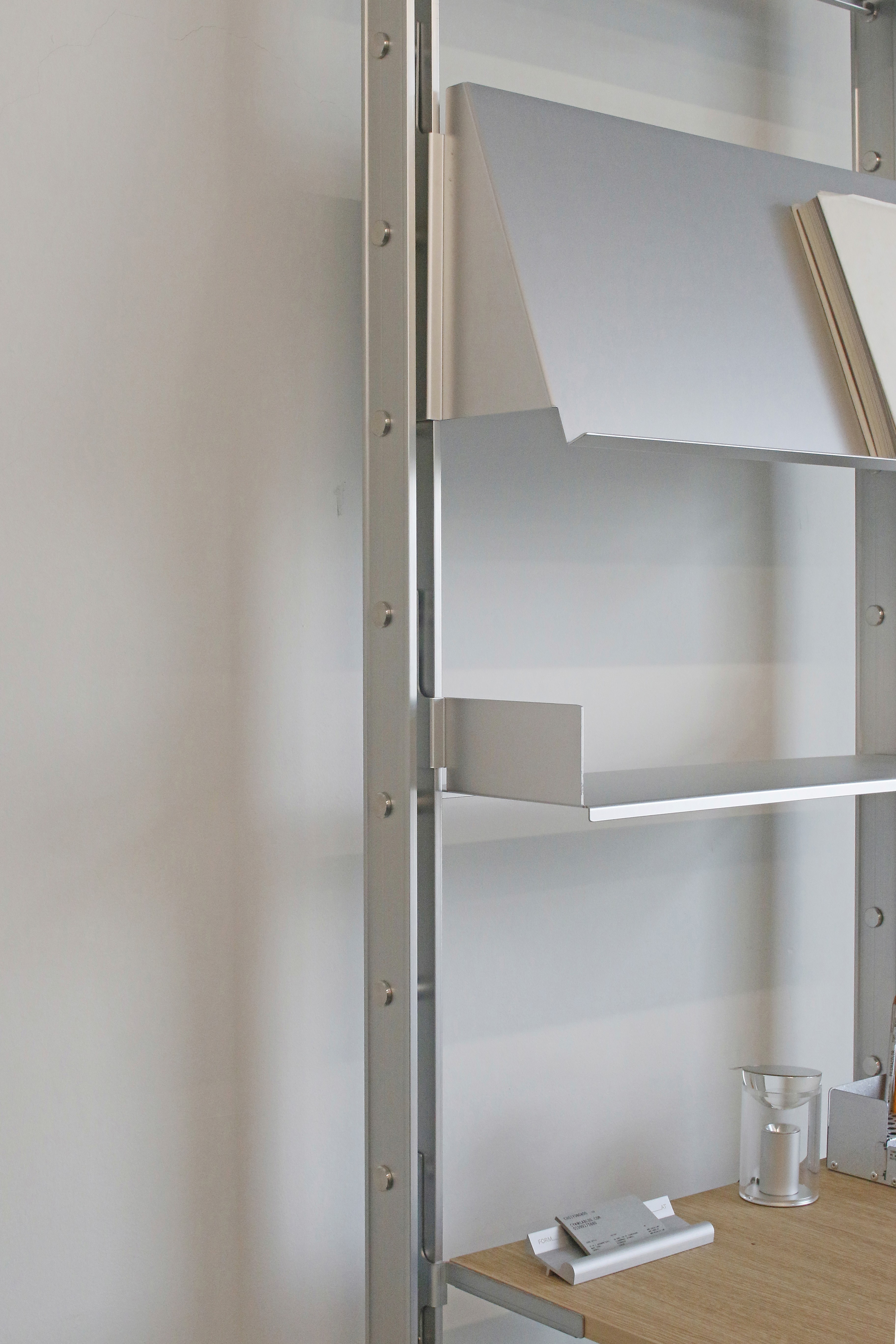 Rather than functioning as a fixed piece of furniture, the shelving system is designed to expand and be reconfigured according to changes in space and user needs. Components originally engineered for functional efficiency in industrial contexts are transformed into elements for everyday storage and display, while the rigid metal structure introduces a sense of order and calm within the space.