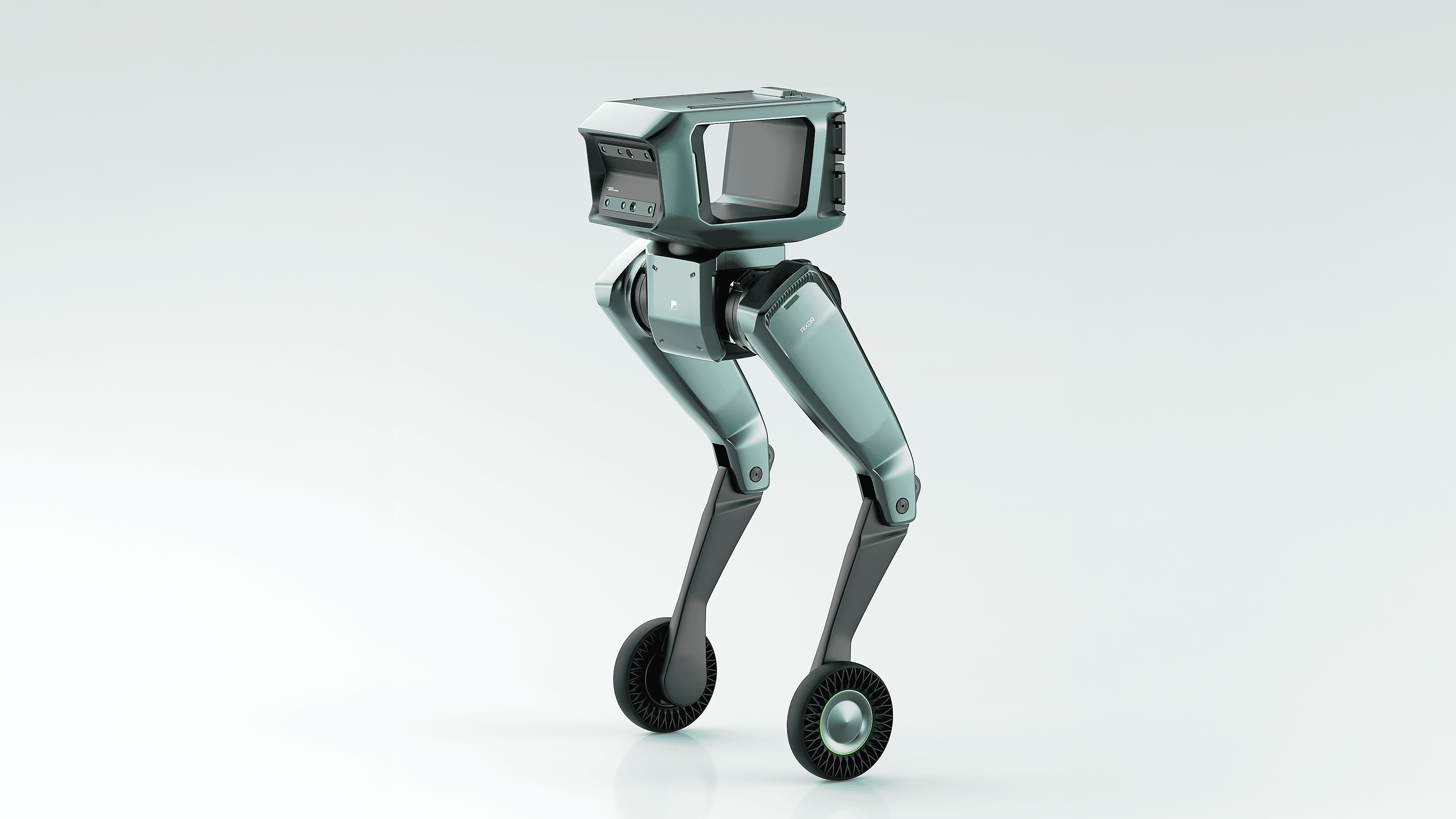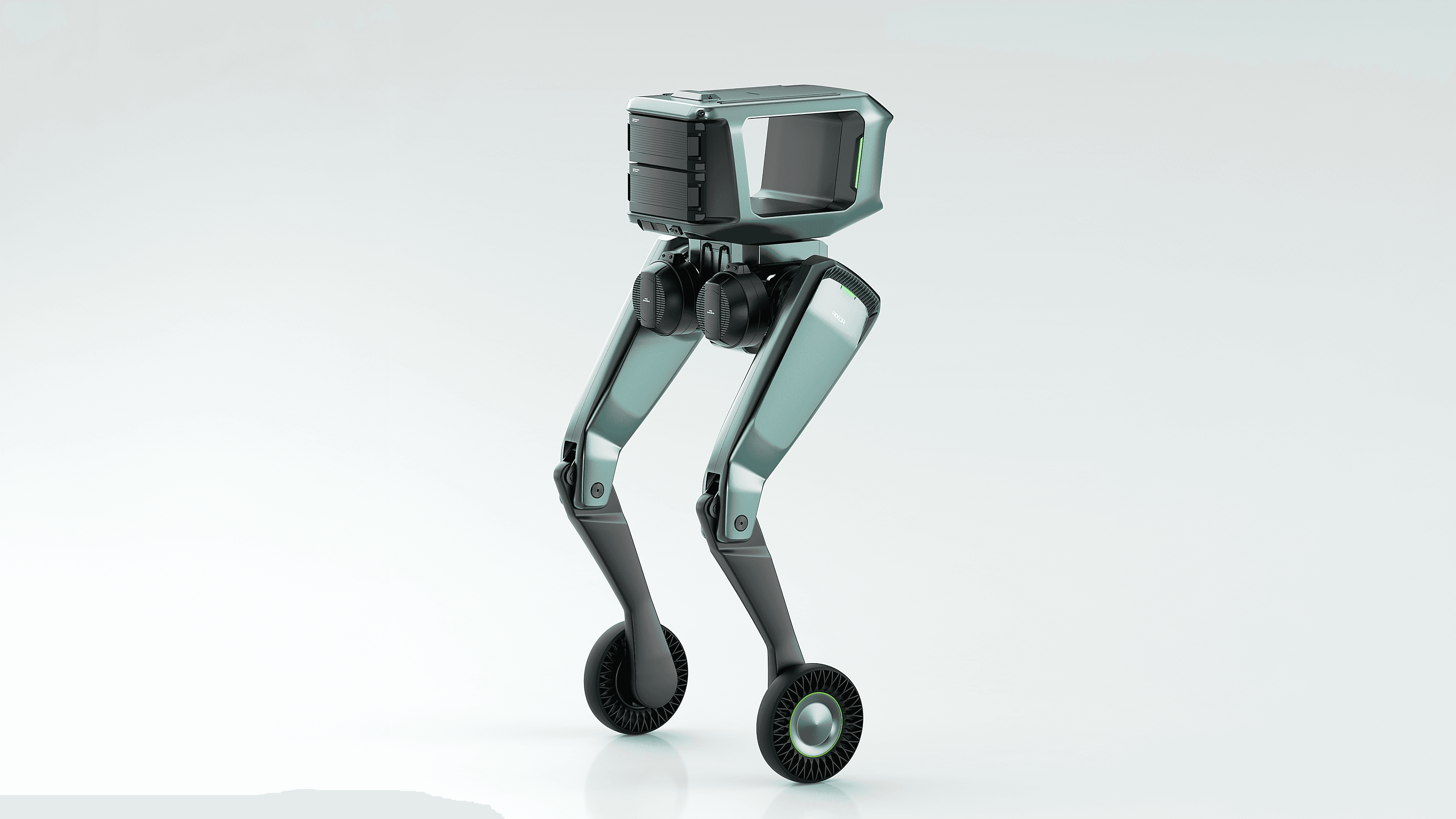 From a design perspective, the product balances functional industrial engineering with a refined high-tech aesthetic. The upper module is structured to house vision systems and sensors for environmental perception and data acquisition, while its modular interface allows additional equipment to be integrated depending on operational needs. The body architecture is carefully designed to provide both protection and accessibility, enabling easy maintenance of internal computing modules and battery systems. Its proportions and silhouette also establish a viewing height similar to that of humans, supporting better collaboration and interaction within industrial work environments.