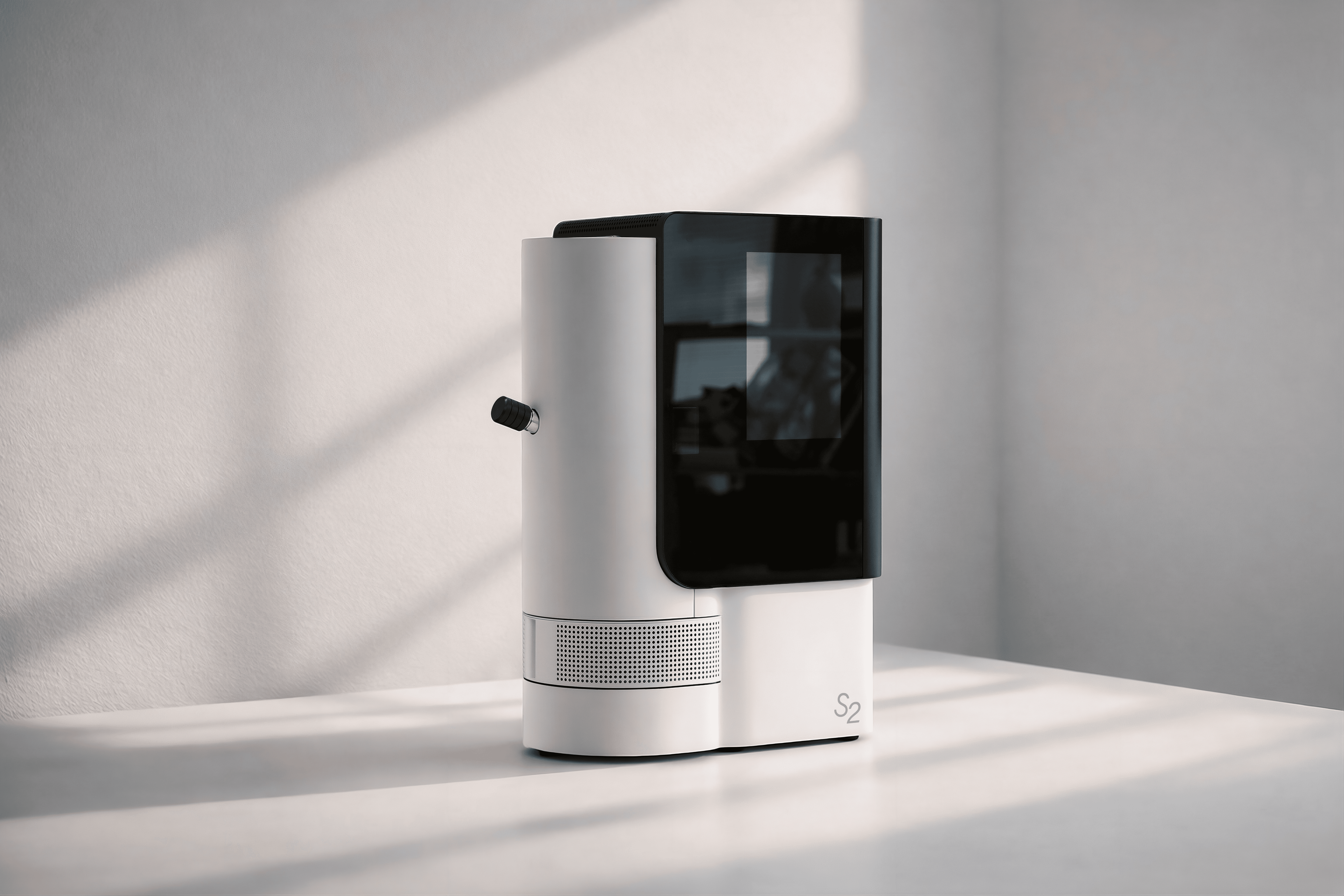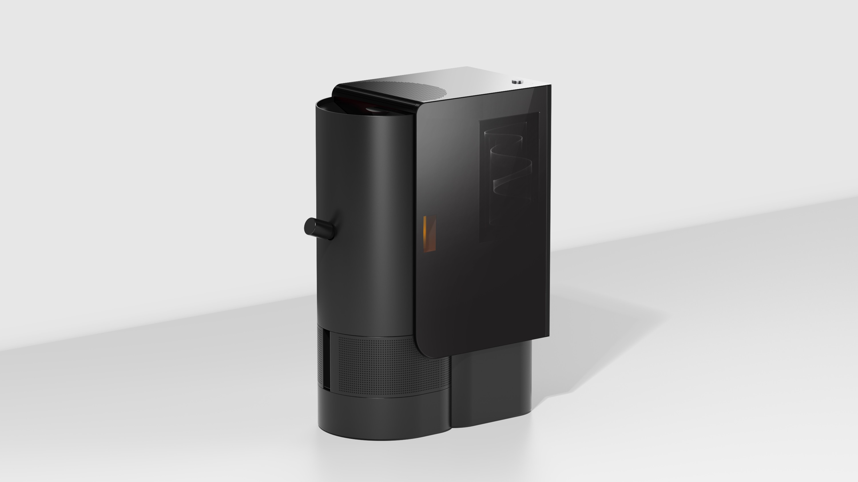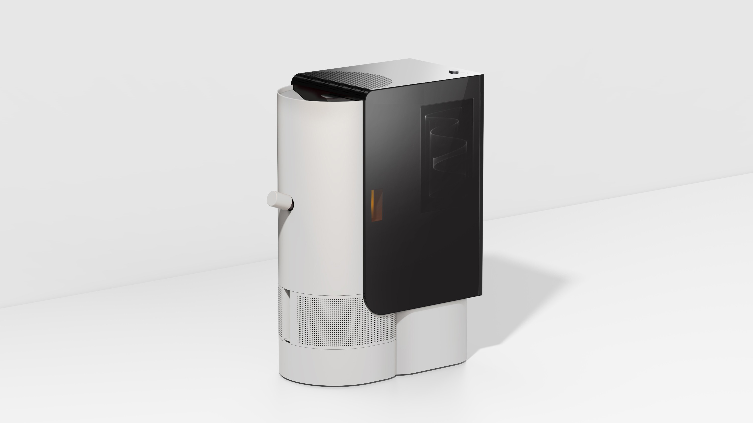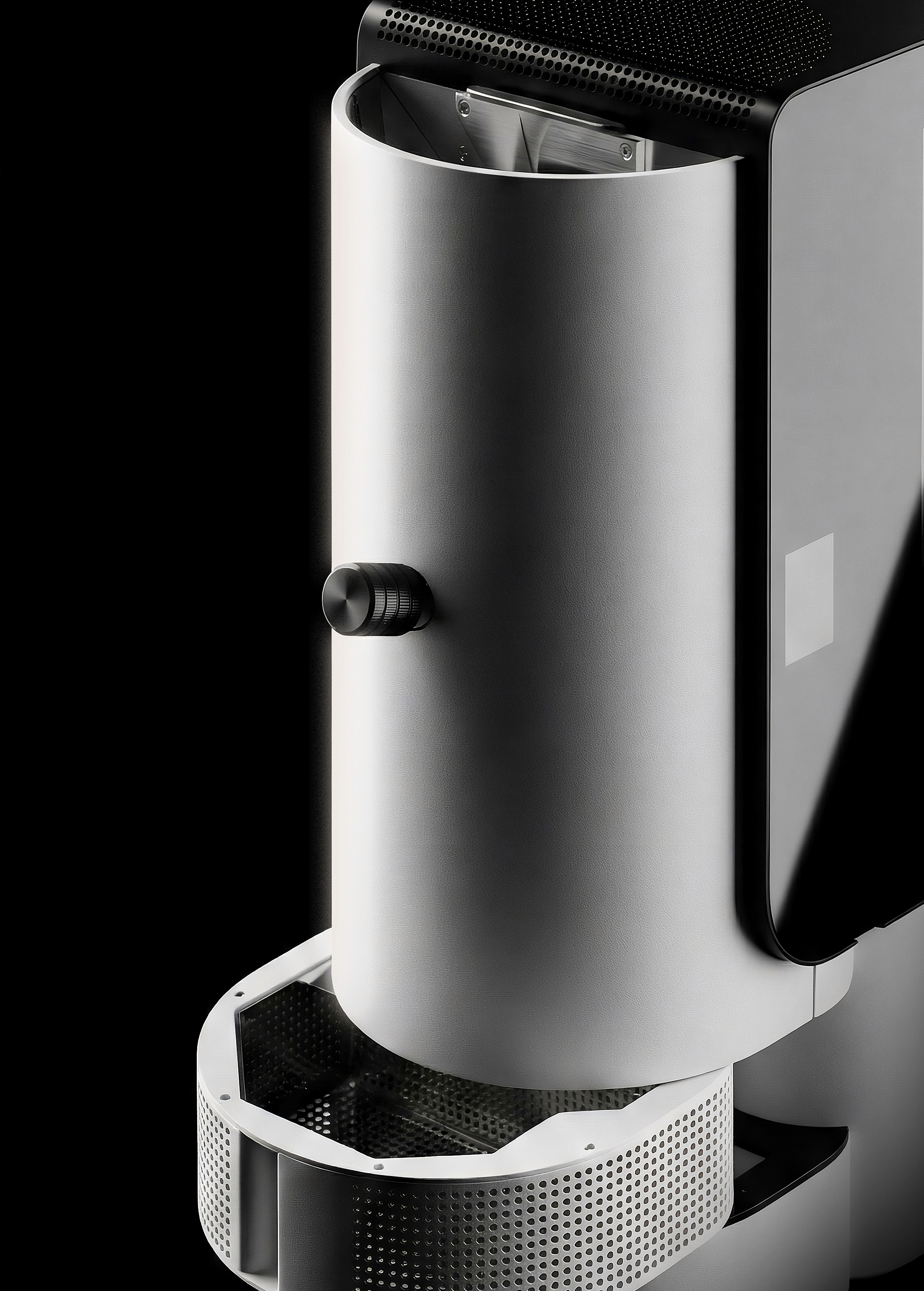 The cylindrical form—aligned with the design language of Stronghold’s existing roasters—was emphasized to create a consistent family look across the product line.